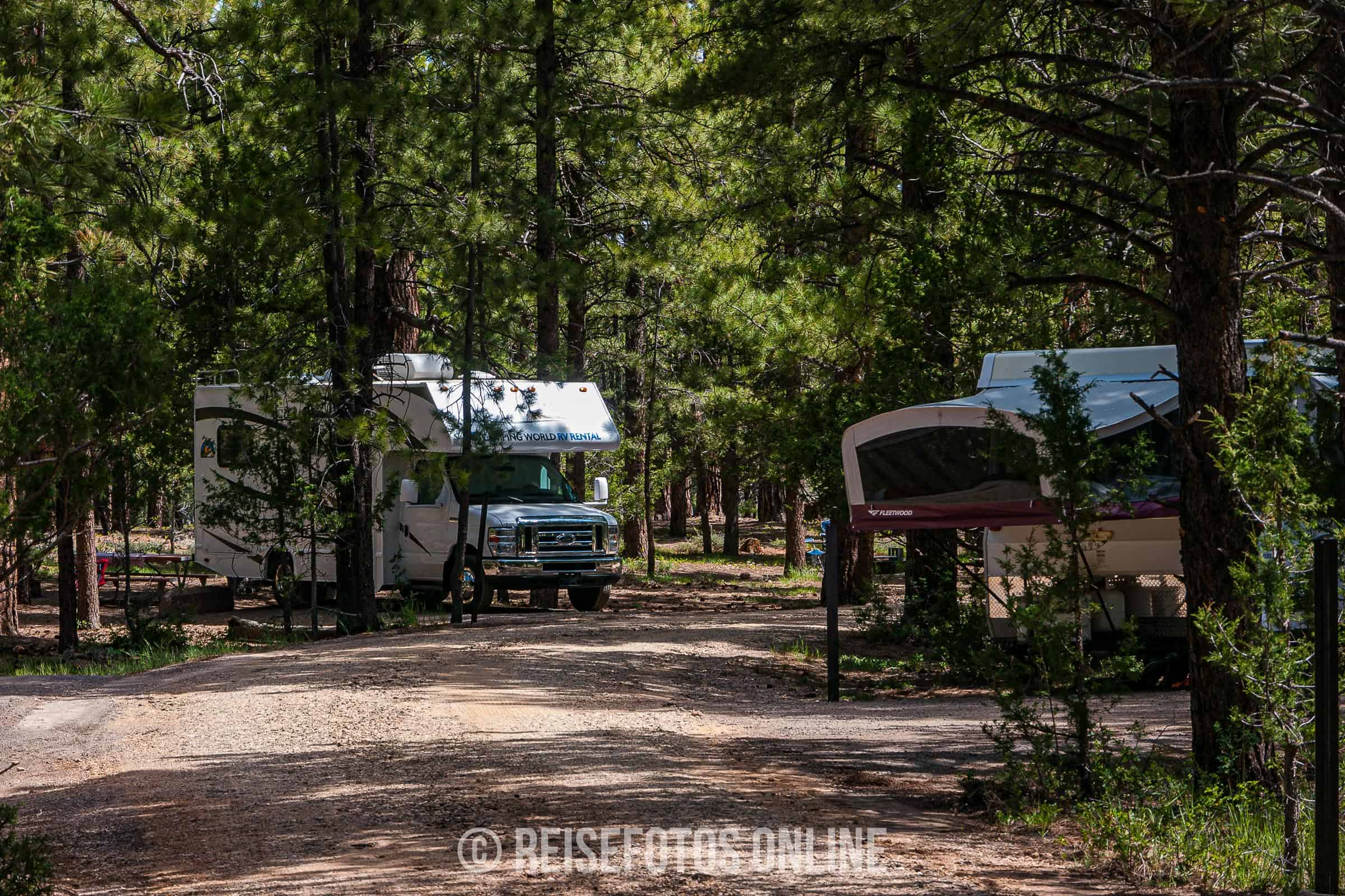 Wohnmobilfahrer finden im Park zwei Campingplätze vor. Es gibt den Sunset Campground mit 100 Stellplätzen, die in der Hochsaison online vorgebucht werden können. Der North Campground hat nur 30 Plätze und funktioniert nach dem „first-come-first-serve“ Prinzip. Die 130 Plätze sind insbesondere in der Hochsaison gar nichts. Man muss oft auf kommerzielle Campingplätze außerhalb des Nationalparks ausweichen. Diese liegen meist aber schon 30 bis 40 Minuten entfernt.