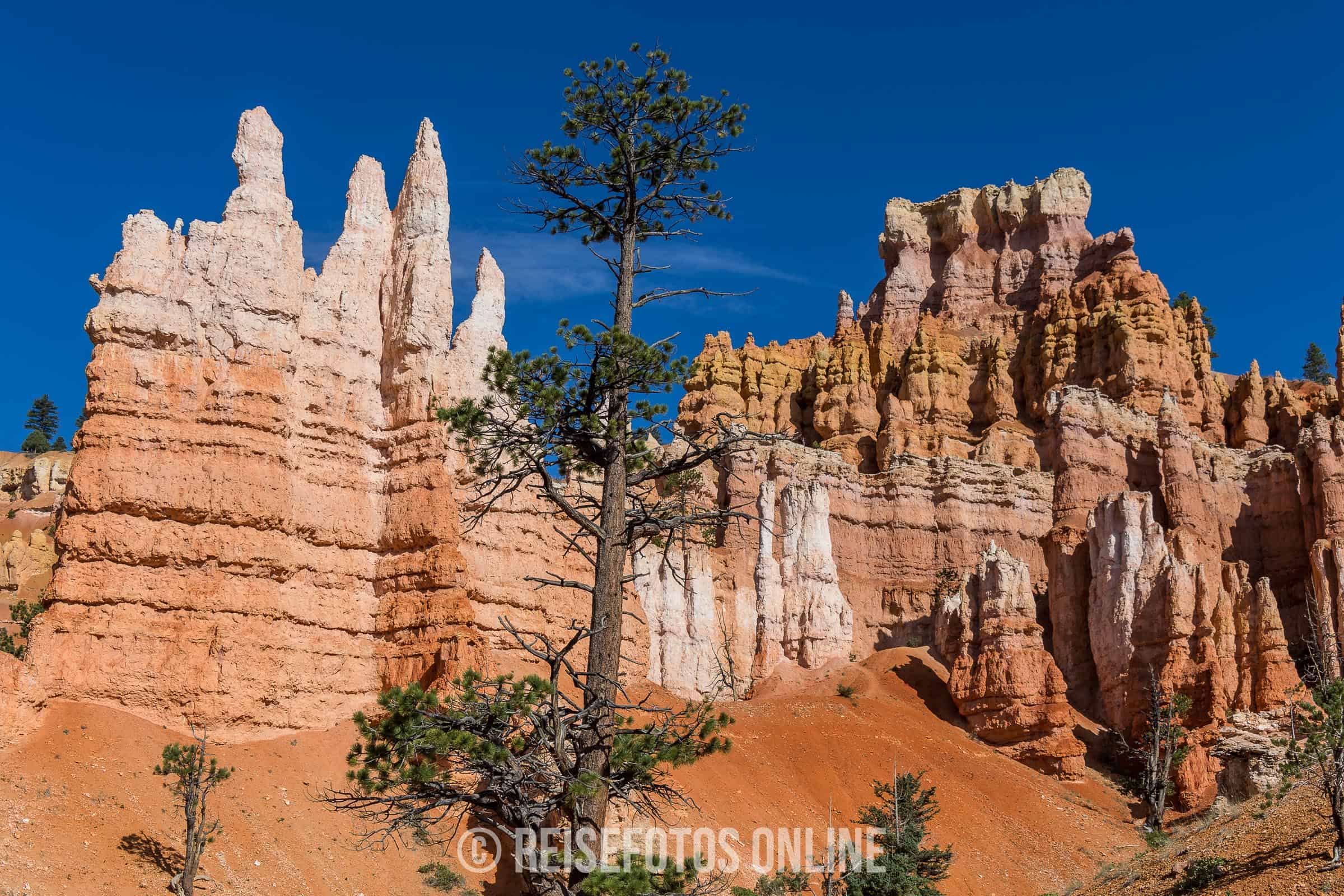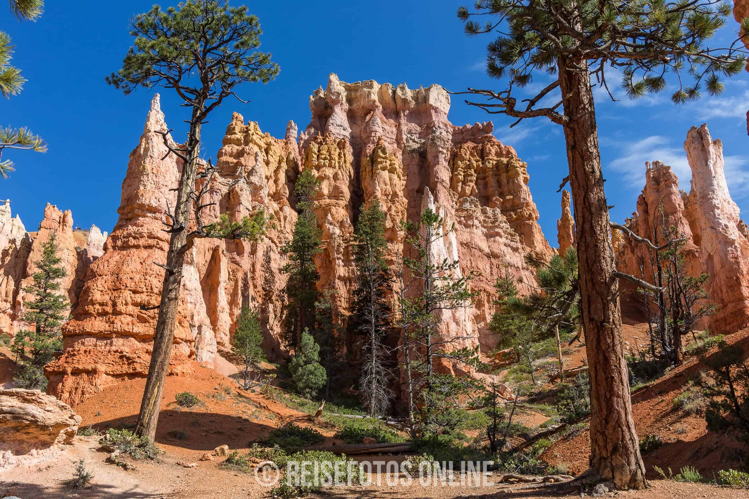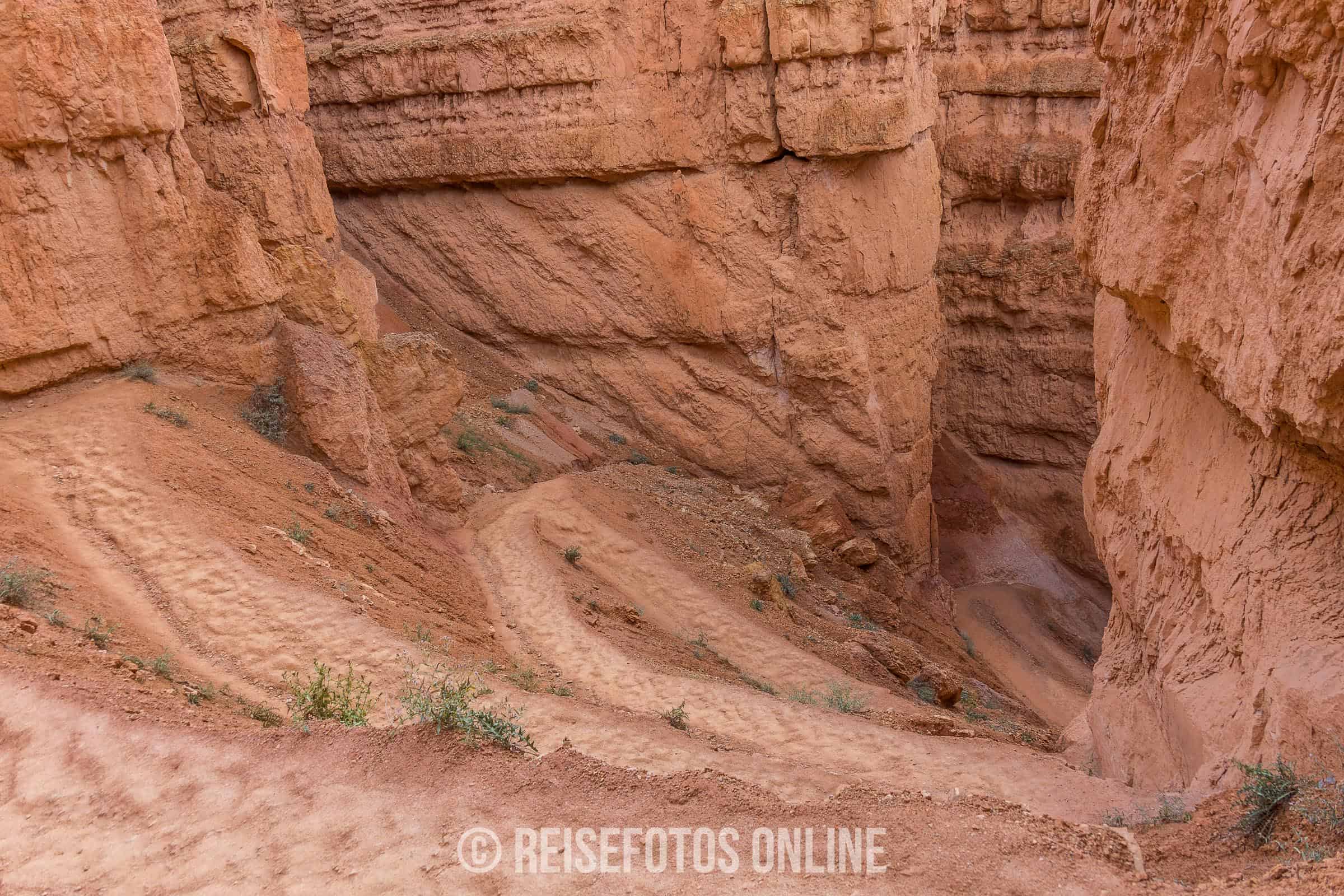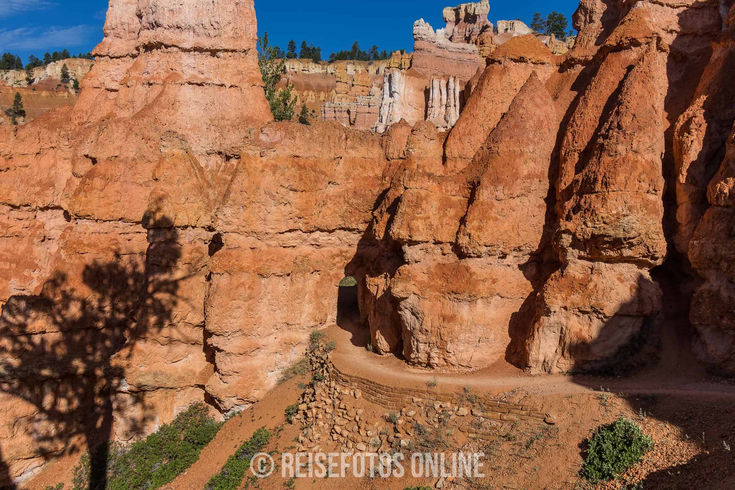 - Wenn es die Zeit zulässt, sollte man auf jeden Fall einen der Wanderwege unterhalb der View Point unternehmen. Am beliebtesten dürfte der Queens Garden Trail mit seinen 1,4 km Länge sein. Man kann diesen Trail optimal mit dem Navajo Loop Trail (1,0 km) kombinieren. Über eines muss man sich im Klaren sein, dies ist wahrscheinlich der beliebteste Trail im Park. Wer Einsamkeit sucht, ist vor allem am Anfang und am Ende des Trails falsch.