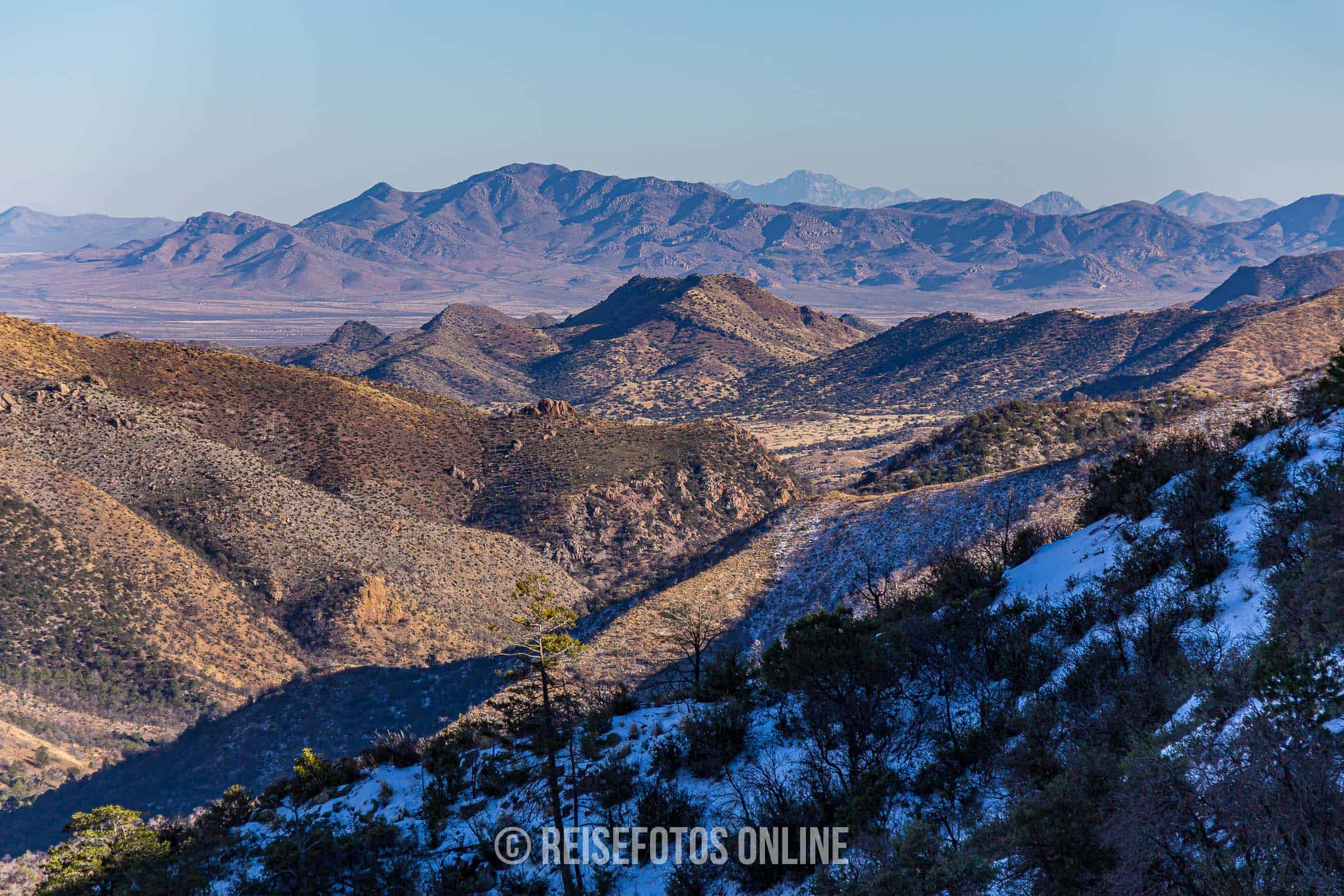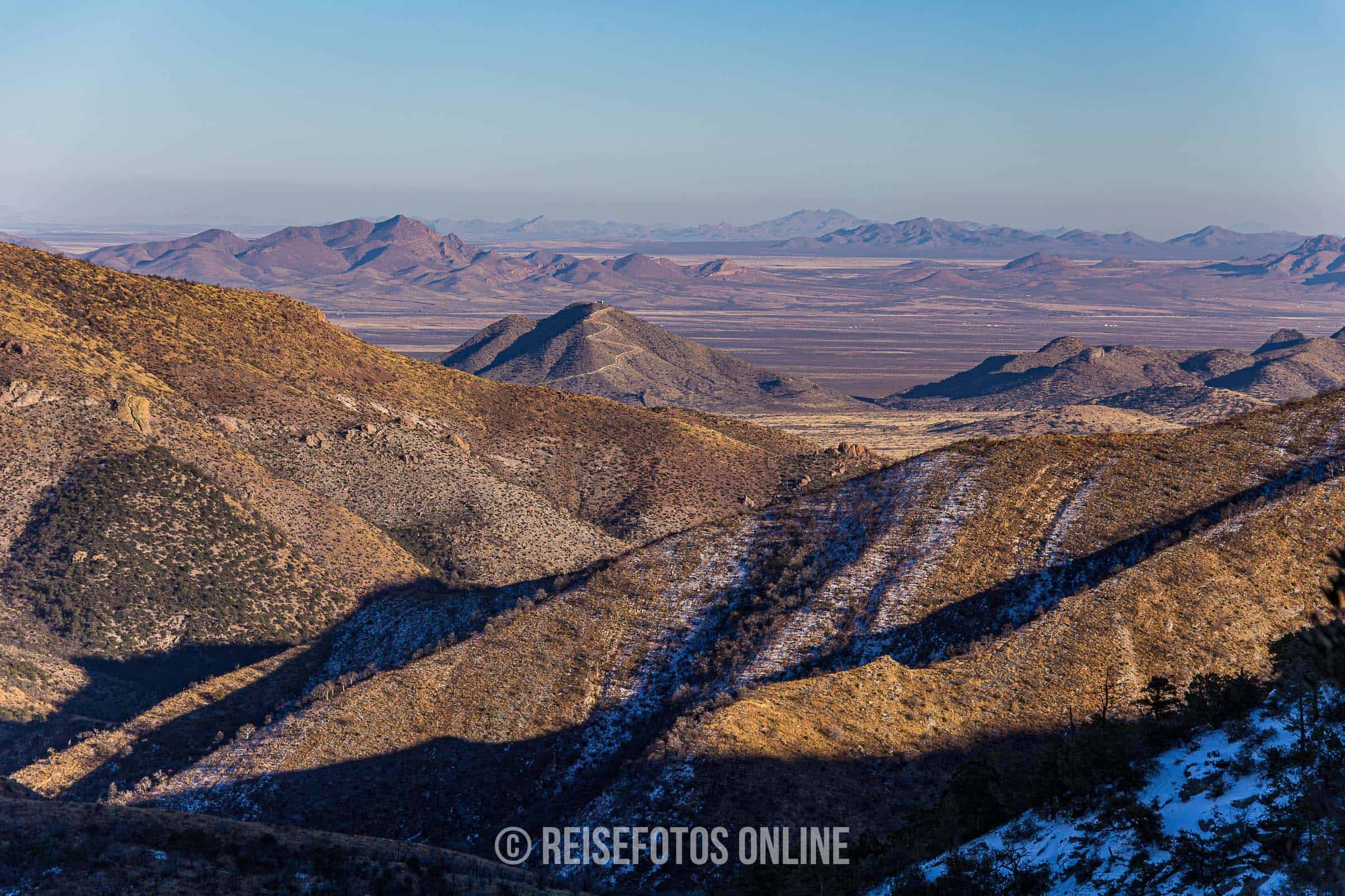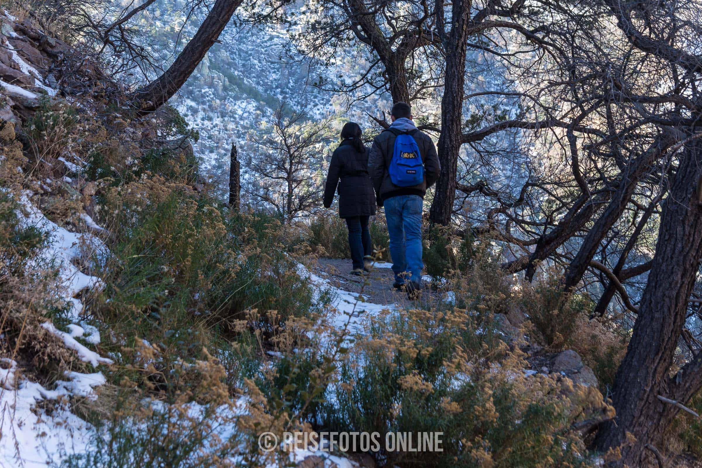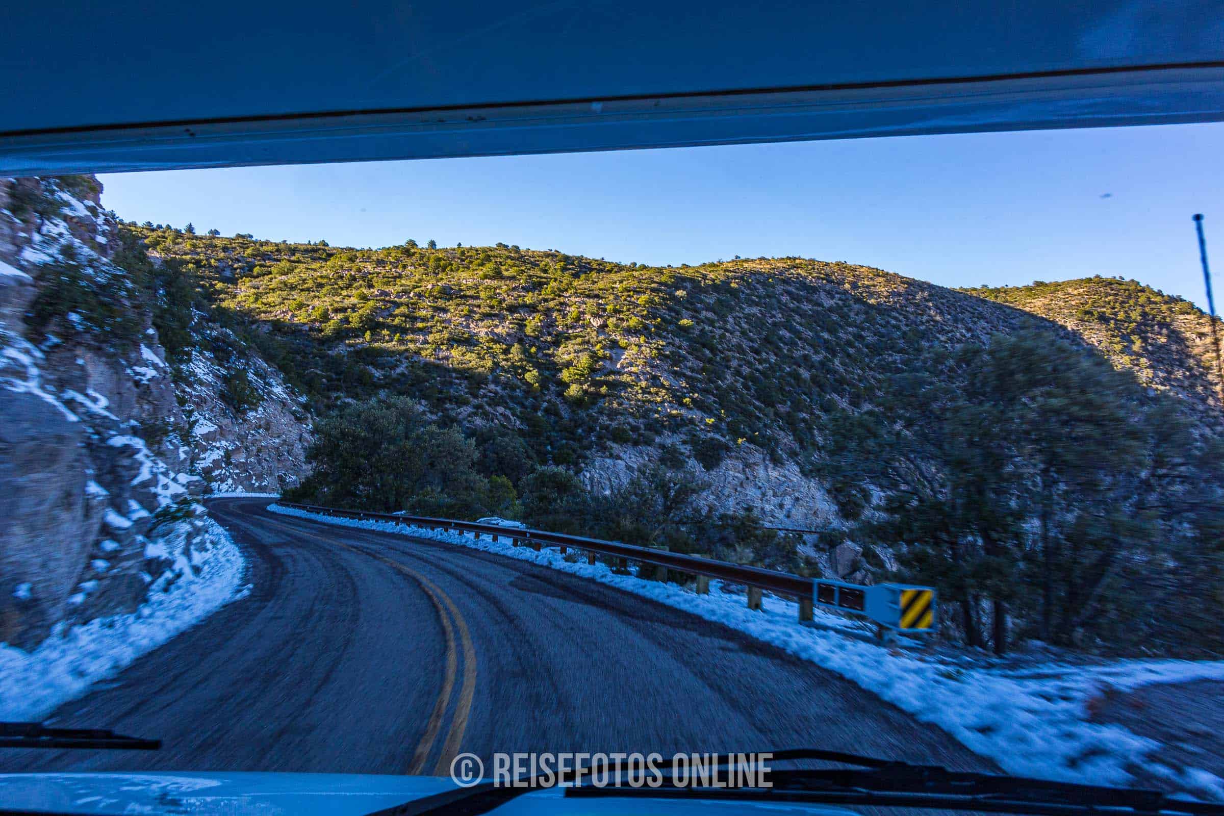 Wir waren am 2. Weihnachtsfeiertag 2013 dort. Im Gebirge war es um diese Zeit selbst tagsüber frostig kalt. Es lag stellenweise Schnee und wir haben sogar Spuren eines Schneeleoparden gesehen. Übernachtet haben wir auf dem Bonita Canyon Campground. Es gab nur wenige Gäste und auch sonst war fast niemand unterwegs. Die maximale zugelassene Länge eines Wohnmobils war mit 29 ft. angegeben. Wir hatten aber große Schwierigkeiten mit unserem 27 ft. RV hineinzufahren. Es gab am Eingang zum Campground zwei sehr starke Straßenabsenkungen und wir sind leicht aufgesessen. Der Campground liegt wunderschön und kann absolut empfohlen werden.