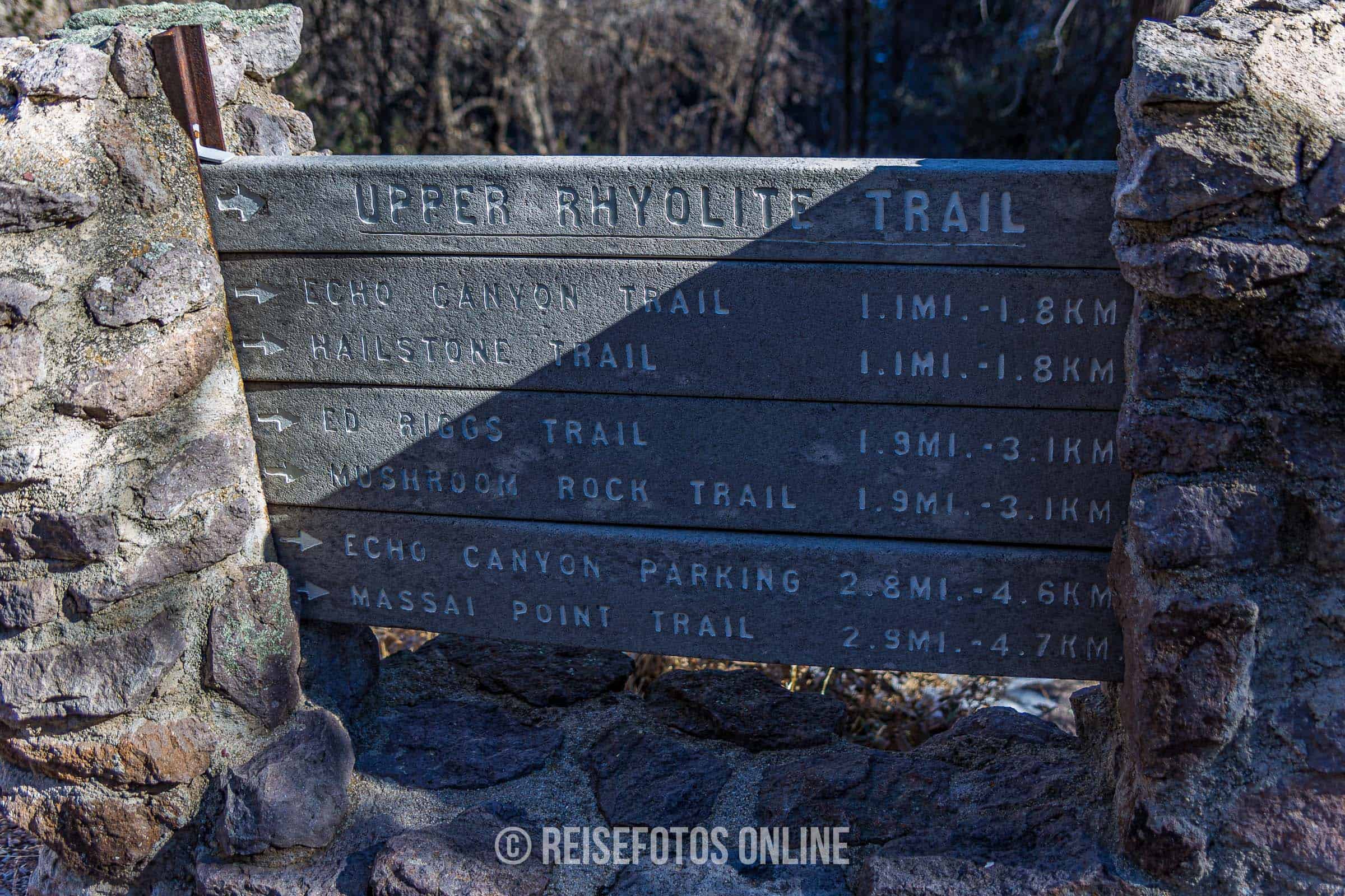Durch den Park führt nur eine Stichstraße – der Bonita Canyon Drive – bis hinauf zum Massai Point. Dort haben die meisten Wanderwege ihren Ursprung. Wir sind den Echo Canyon Loop gelaufen, der an Grotten vorbei wieder zurück ins Tal führt. Jeden Morgen fährt ein Ranger mit einem Bus Touristen hinauf zum Massai Point, sodass man sich den Weg zurück nach oben sparen kann. Die Busfahrt war kostenlos und man bekam die Fahrt über tolle Informationen vom Ranger. Man sollte sich den Tag vorher für die Fahrt anmelden.