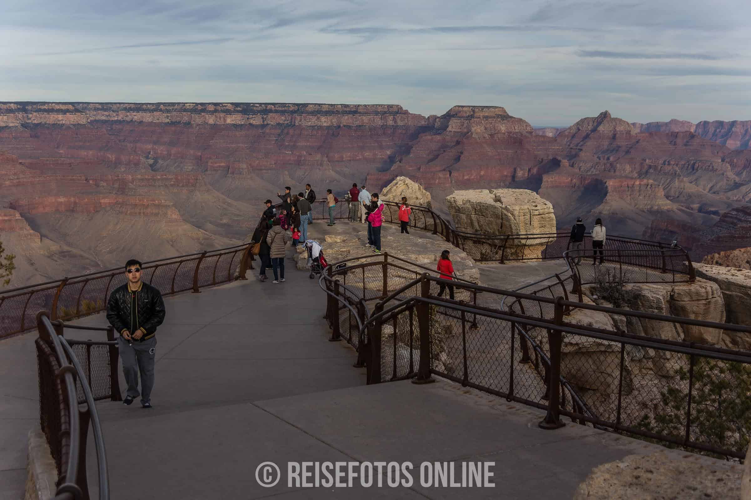 Der Grand Canyon National Park setzt sich aus North-Rim und South-Rim zusammen, wobei die Mehrzahl der Reisenden den verkehrsgünstiger gelegenen South-Rim besucht. Ich höre immer wieder die Frage, ob es sich lohnt, den North- und den South-Rim zu besuchen. Es ist doch dieselbe Schlucht. Diese Frage kann nur mit einem eindeutigen Ja beantwortet werden. Der Südteil ist der etwas zugänglichere, der etwas massenkompatiblere Teil. Der Norden ist doch eher rauer, irgendwie ganz anders, die Sicht auf den Canyon ist eine ganz andere. Es lohnt sich aber auf jeden Fall. Es gibt einen weiteren bekannten Zugang zum Grand Canyon. Das ist der Skywalk. Dieser liegt an der Westseite in der Nähe von Las Vegas und gehört nicht zum Nationalpark, sondern gehört dem Stamm der Hualapai.