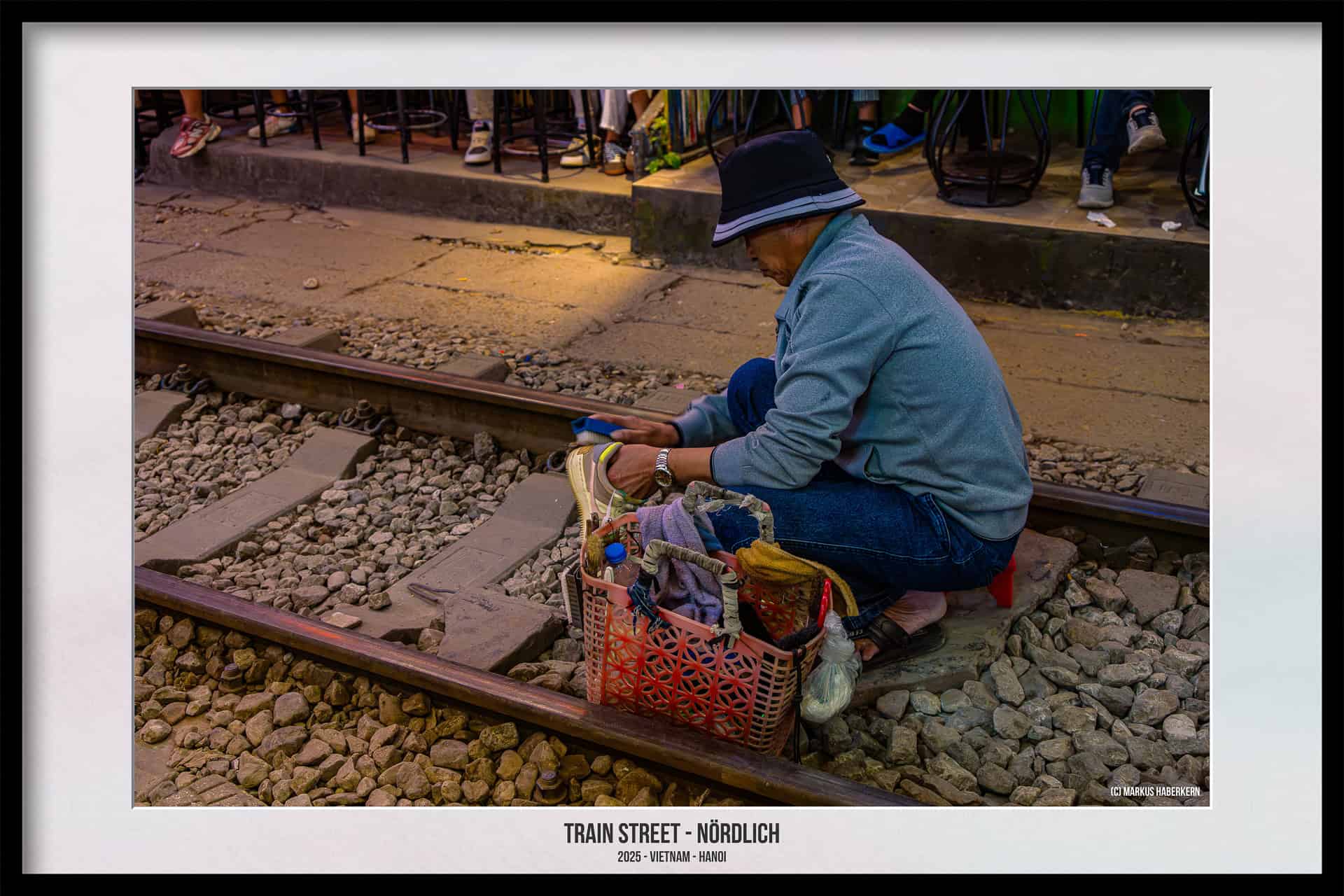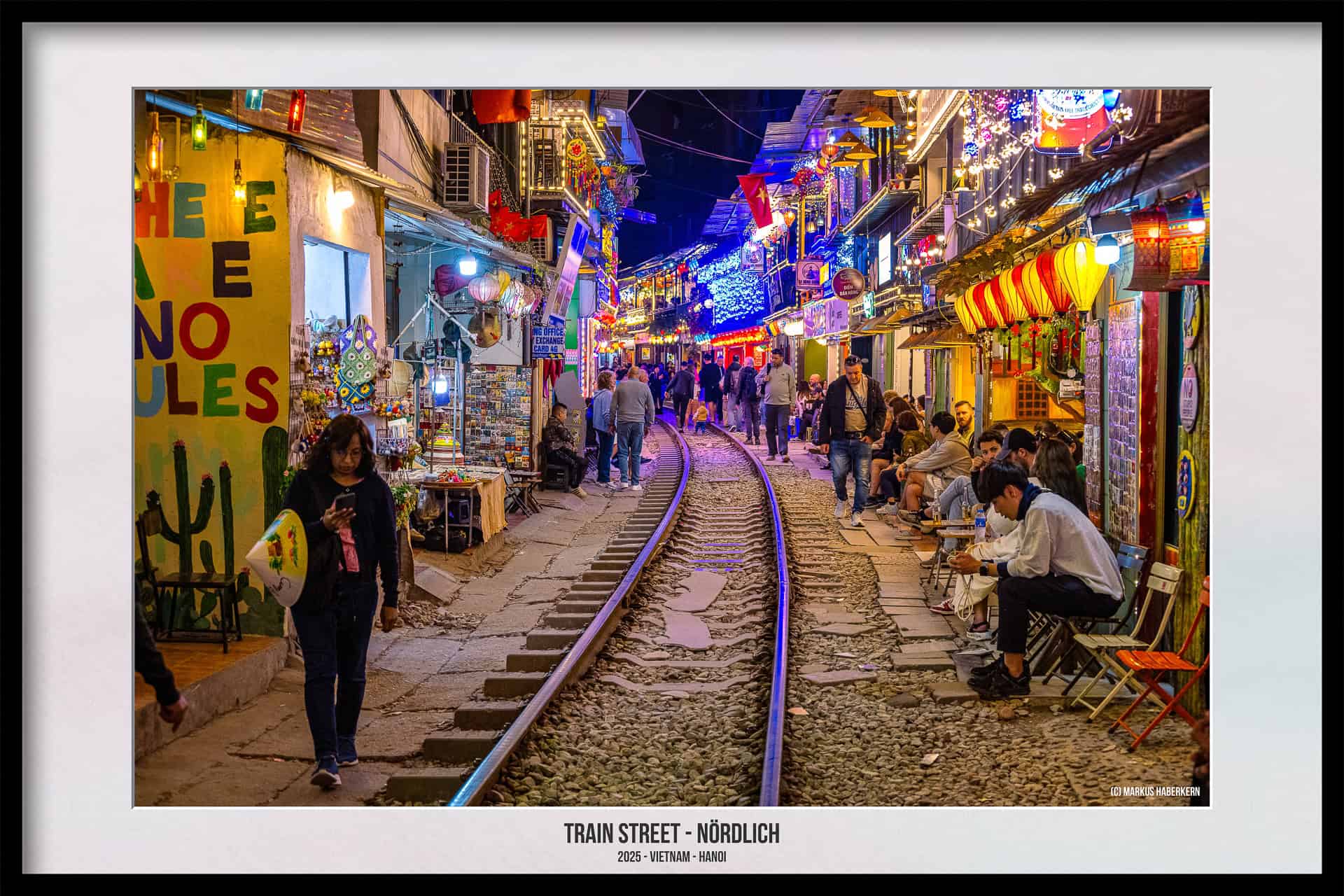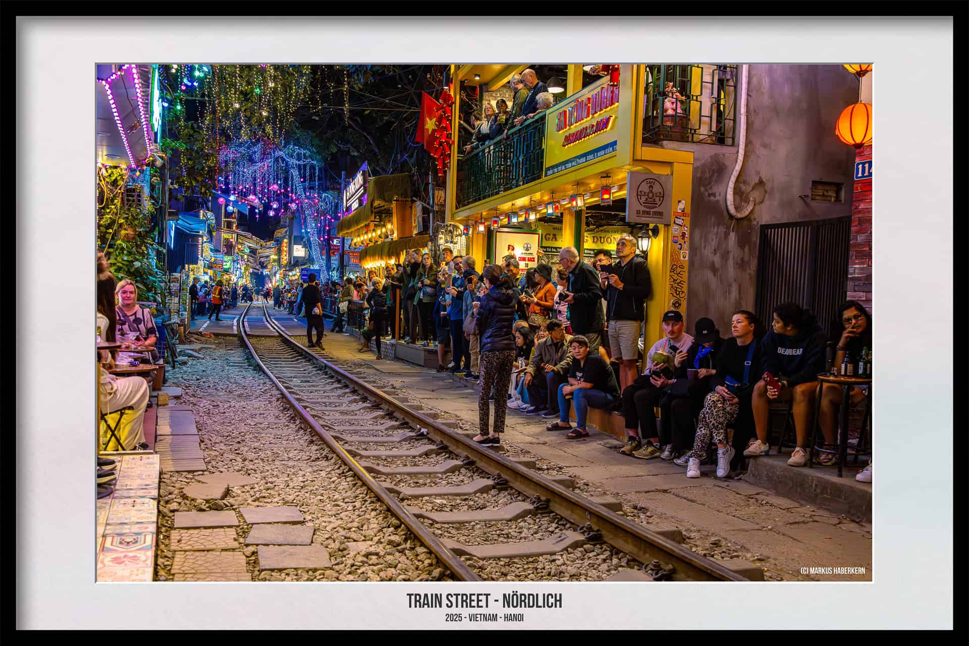 Die Geschäftsleute der Cafes und Einkaufsläden achten auf die Einhaltung der Sicherheit. Sie sind dabei sehr engagiert, ist doch der ungestörte Betrieb der Strecke in ihrem eigenen Geschäftsinteresse. Und in eurem Interesse sollte es liegen, euch nicht in Gefahr zu bringen. Es gibt keinerlei Absperrungen und die in vielen Reiseführern beschriebene gelbe Linie, gewissermaßen als Sicherheitslinie, haben wir bei unseren Besuchen im Jahr 2025 nicht gesehen.