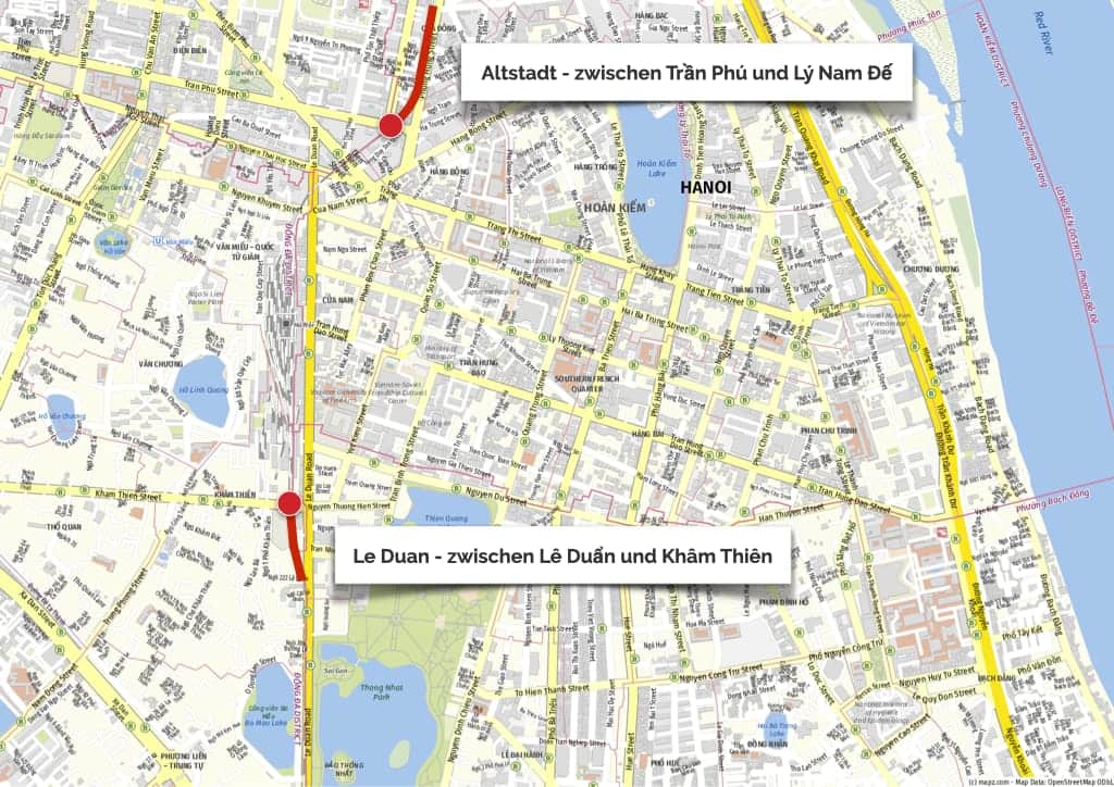 • Altstadt: zwischen der Kreuzung von Trần Phú und Lý Nam Đế ist die nördlichere Trainstreet, vor dem Bahnhof Hanoi. Durch die Nähe zur Altstadt ist dieser Ort leichter zugänglich als Le Duan. Allerdings ist es hier in der Regel auch deutlich voller und touristischer.