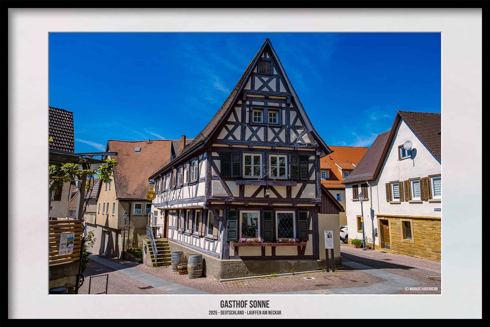 Eines der wahrscheinlich sehenswertesten Gebäude in der Lauffener Altstadt, dem Städtle, ist der Gasthof Sonne. Es ist das älteste (von derer vielen) Wirtshaus in Lauffen und wurde 1677 erbaut. Der Gewölbekeller stammt wohl sogar aus dem späten 15. Jahrhundert.