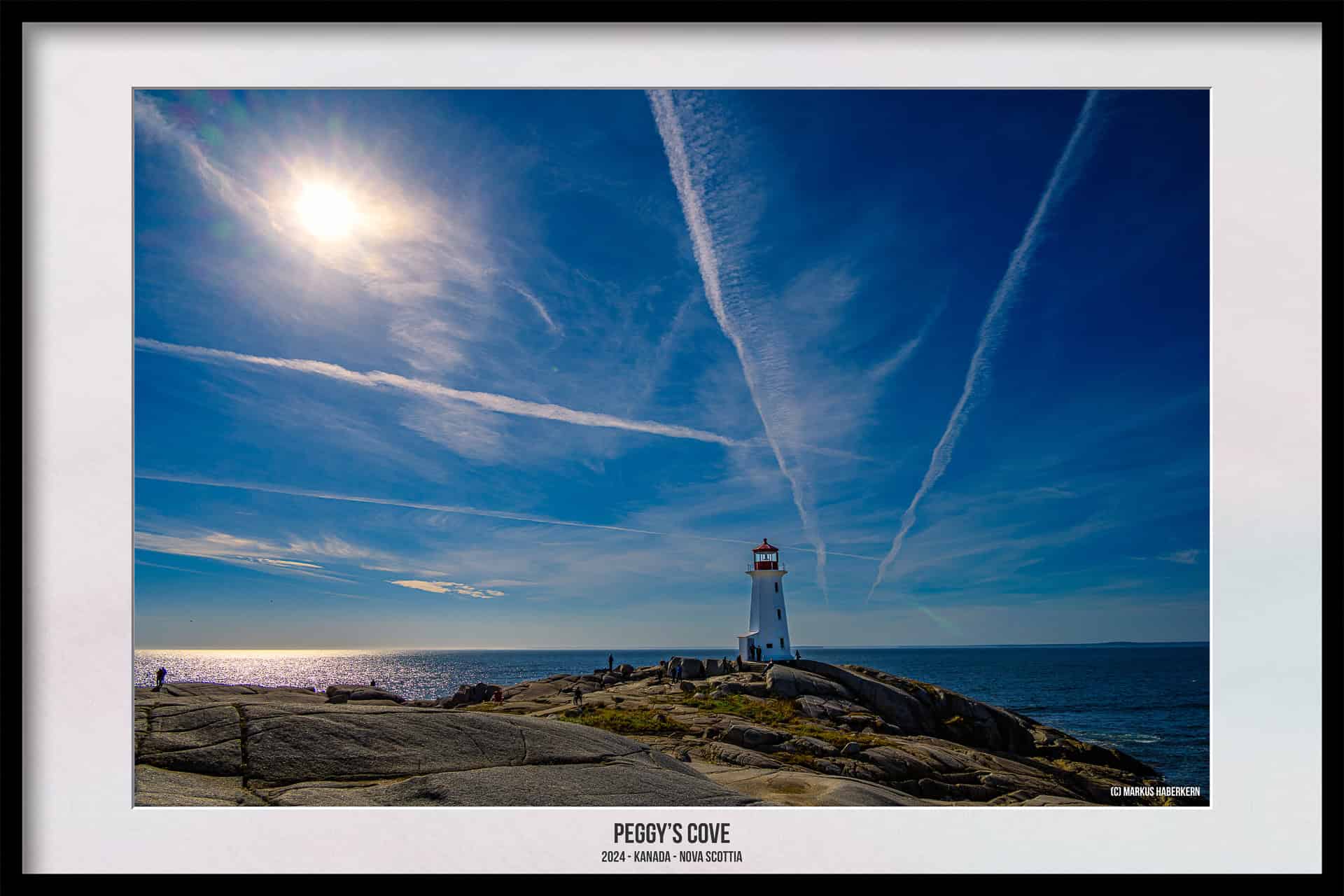 - Am Ende des kleinen Dorfes findet man dann den Leuchtturm, das Peggy’s Cove Lighthouse. Der klassische rot-weiße Leuchtturm wird noch immer von der kanadischen Küstenwache betrieben und befindet sich auf einem Granitfelsen am Peggys Point. Er ist frei zugänglich, und wir haben uns ausgiebig Zeit genommen, diesen mehrfach zu umrunden. Der weiss-rote Leuchtturm und die Granitfelsen sind bei schönem Wetter wahnsinnig tolle Fotomotive.