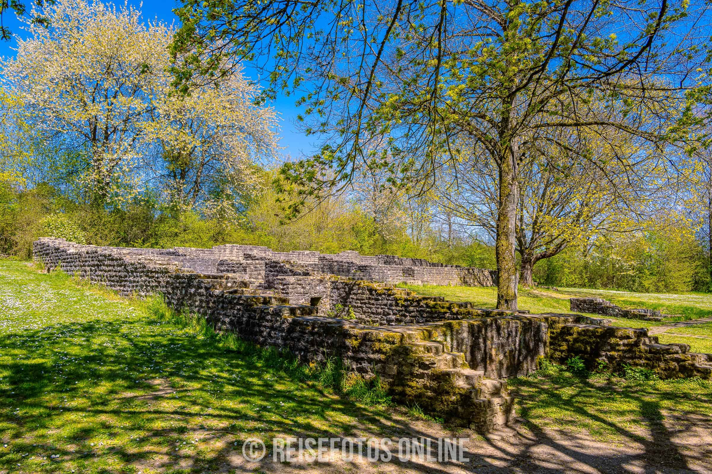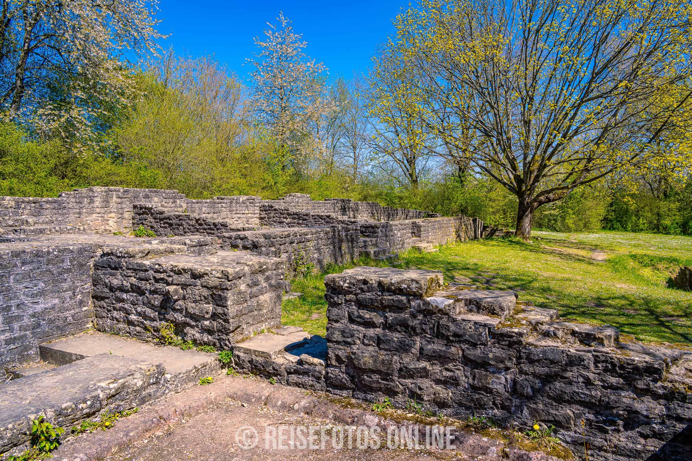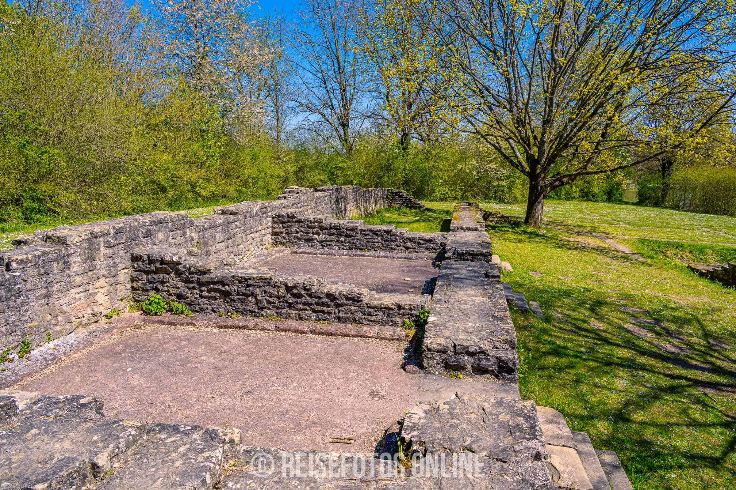 Ruinen eines gut erhaltenen römischen Gutshofs, einer Villa Rustica am Römersee im Bad Rappenauer Stadtteil Zimmerhof