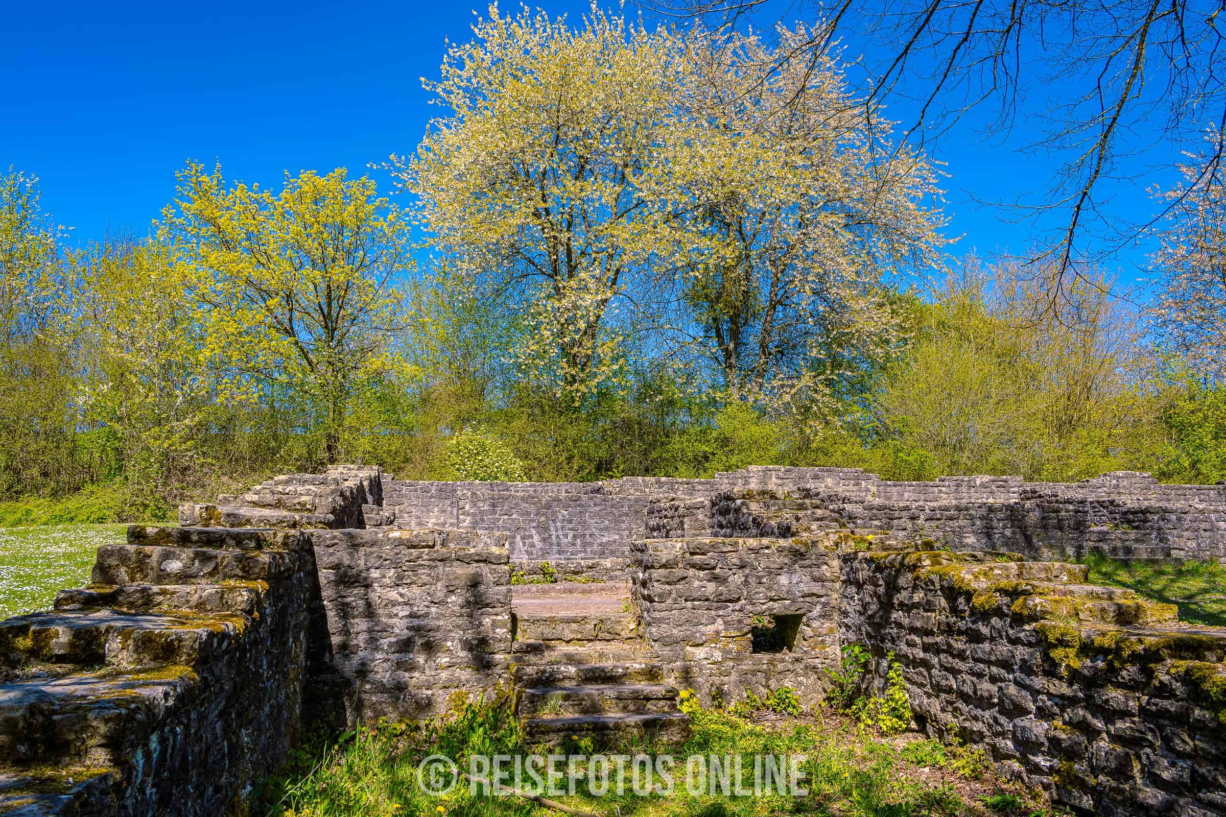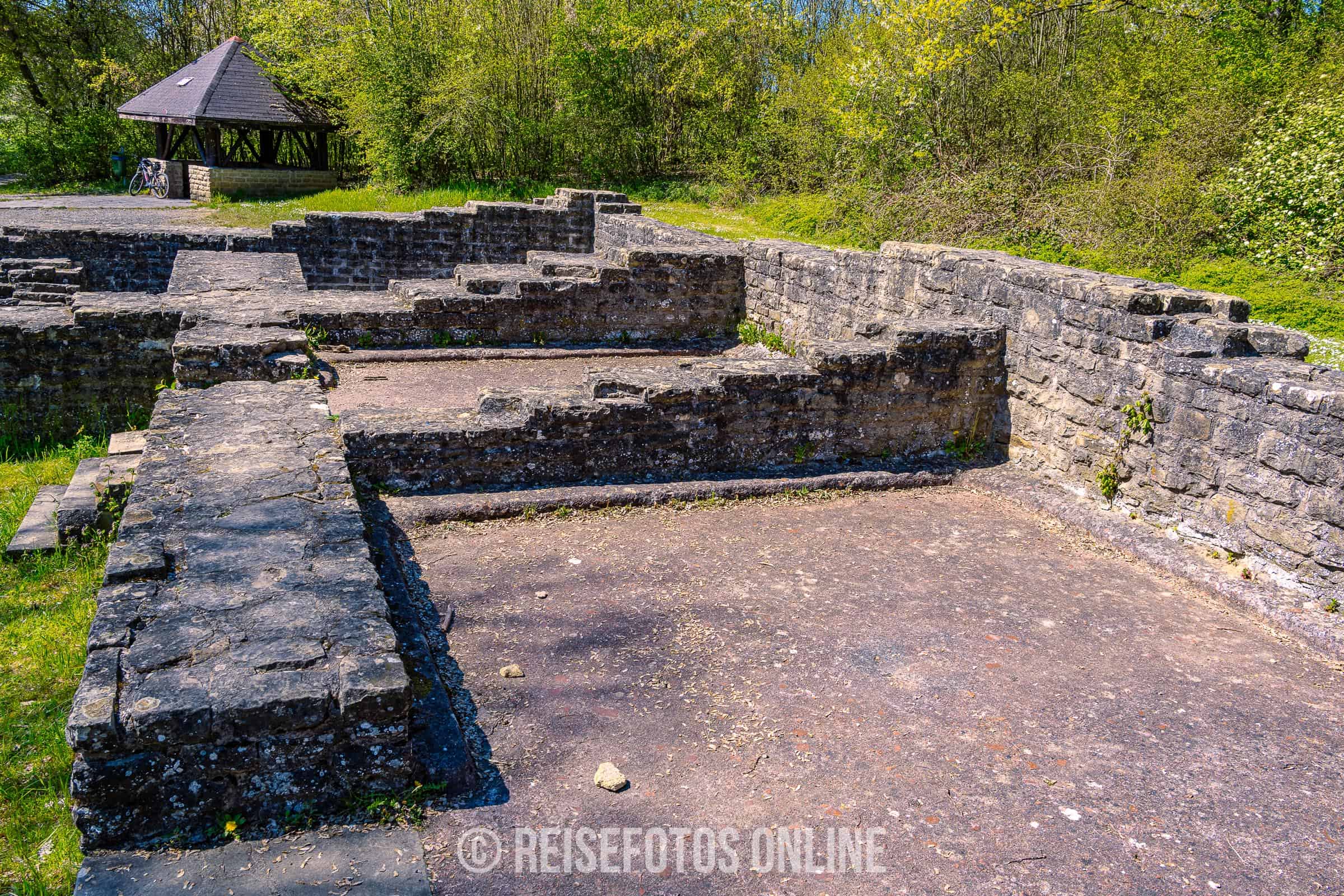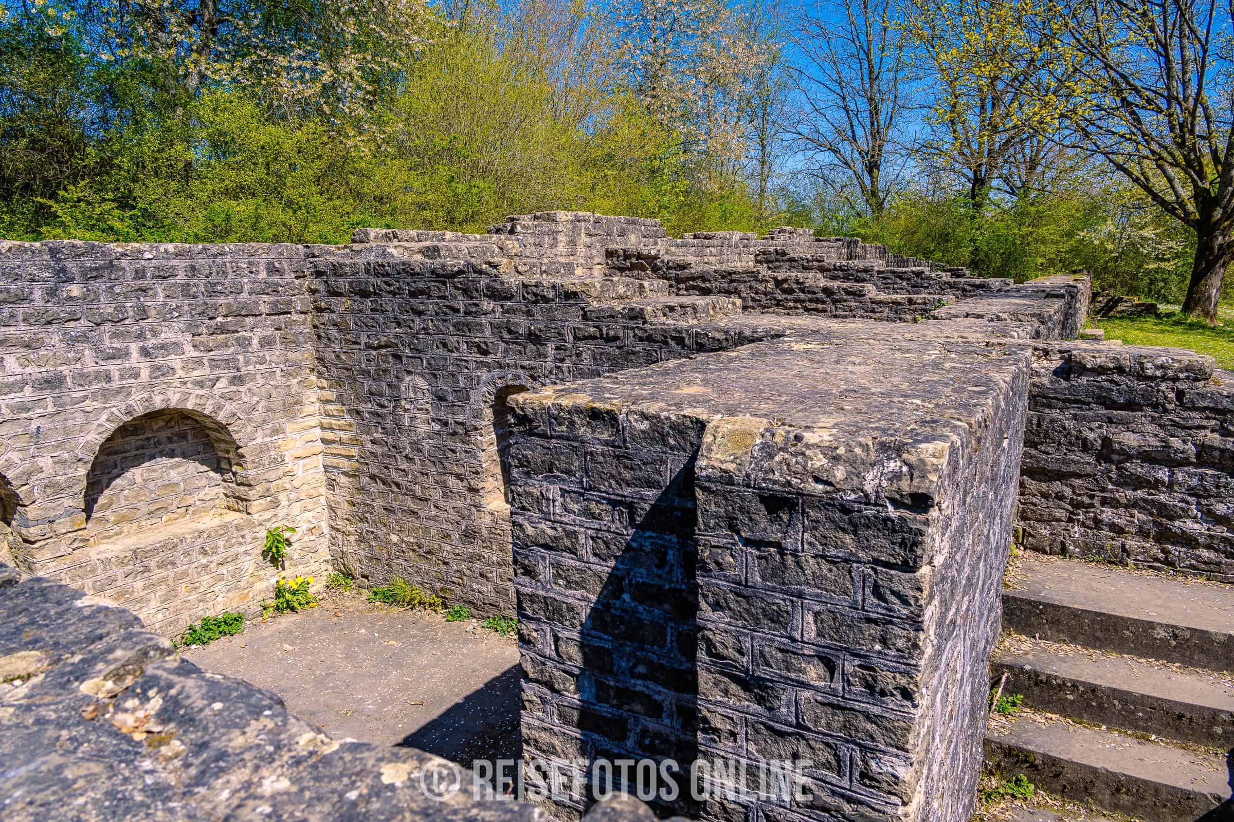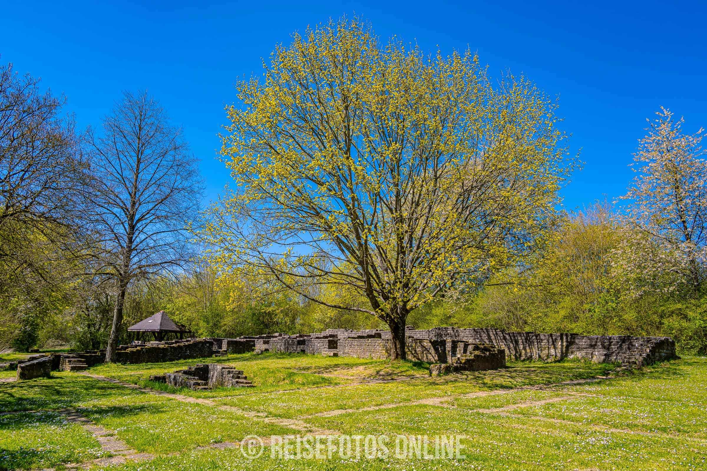 Ruinen eines gut erhaltenen römischen Gutshofs, einer Villa Rustica am Römersee im Bad Rappenauer Stadtteil Zimmerhof