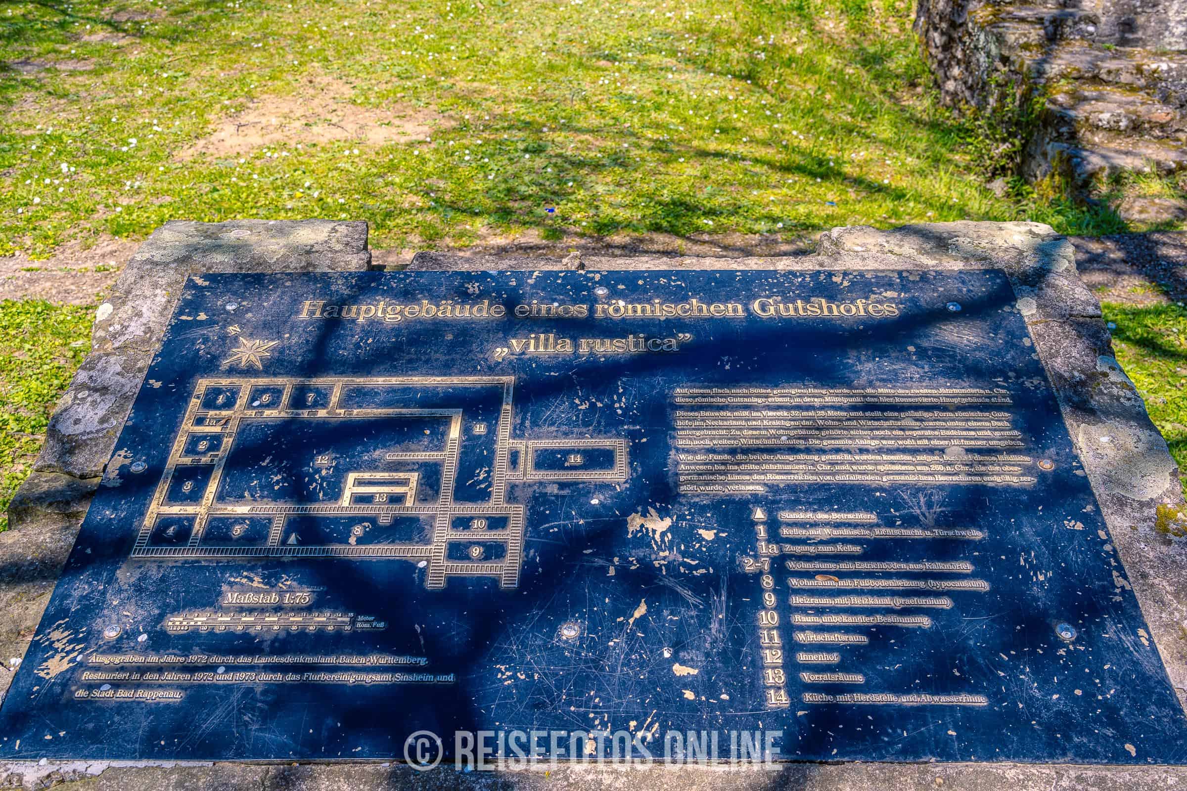 Etwa 1.800 Jahre ist es her, da war auch Bad Rappenau ein Teil des römischen Weltreichs. Überreste davon findet man in der Region recht zahlreich. Eines der Zeugnisse ist in der Nähe von Bad Rappenau-Zimmerhof, am sogenannten Römersee. Die dortigen Ruinen einer Villa Rustica, also eines Guts- oder Bauernhofs sind konserviert und noch recht gut erhalten